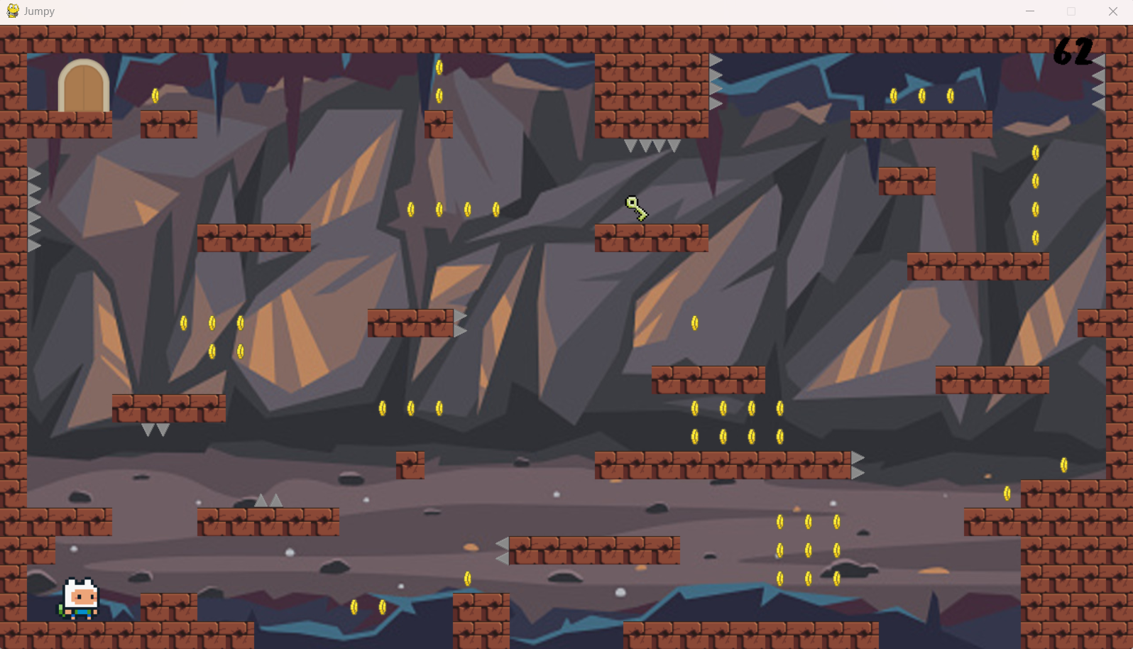 Jumpt is a platform game with one level, where the player has to catch the key to open the door. There's a leaderboard, where the players are ranked based on the number of coins they collect and the time they take to finish the level.