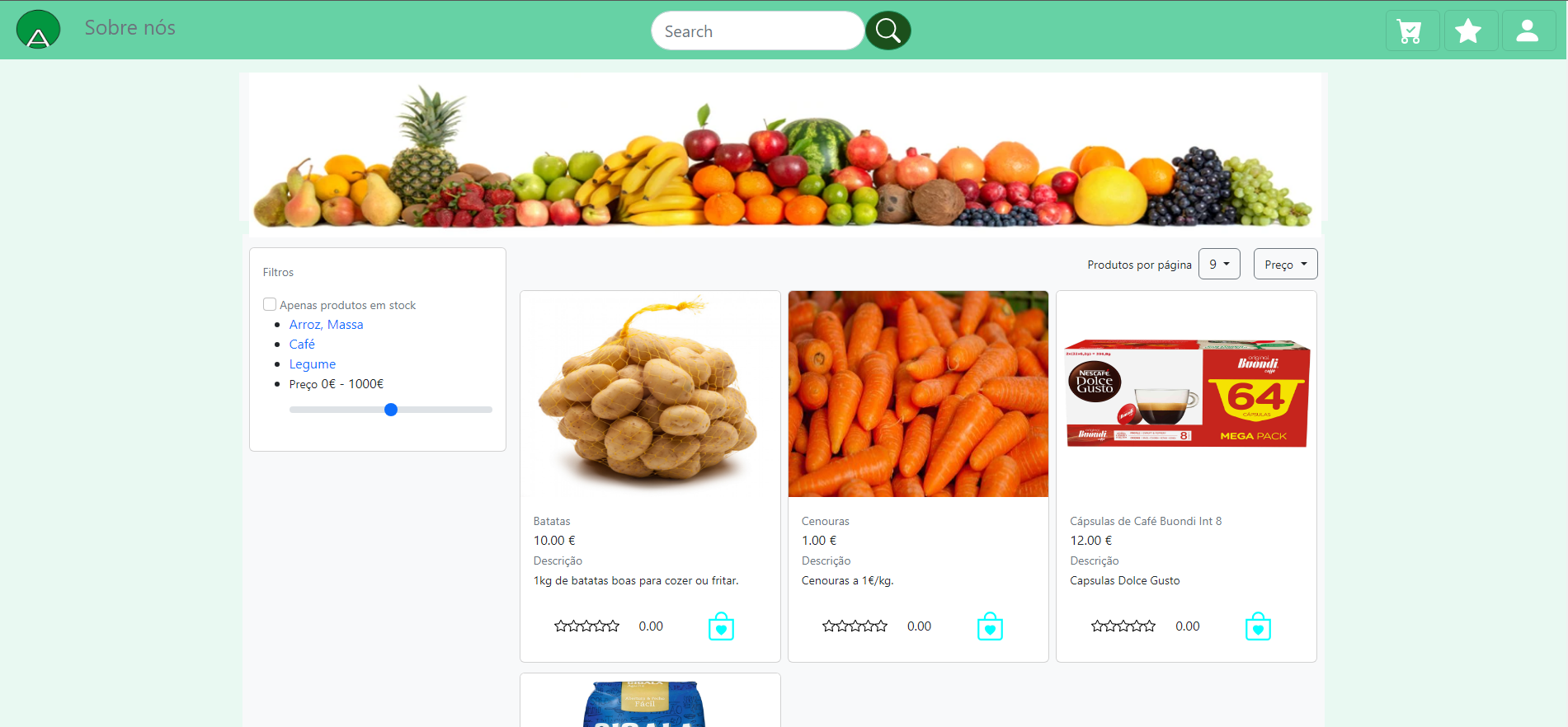 This is a supermarket website made for a small supermarket in Portugal. For this project, I was the project manager and lead developer, having to manage a team of 10 people. We did weekly meetings where we talked about the progress of the project and the tasks that needed to be done, as well as task delegation.